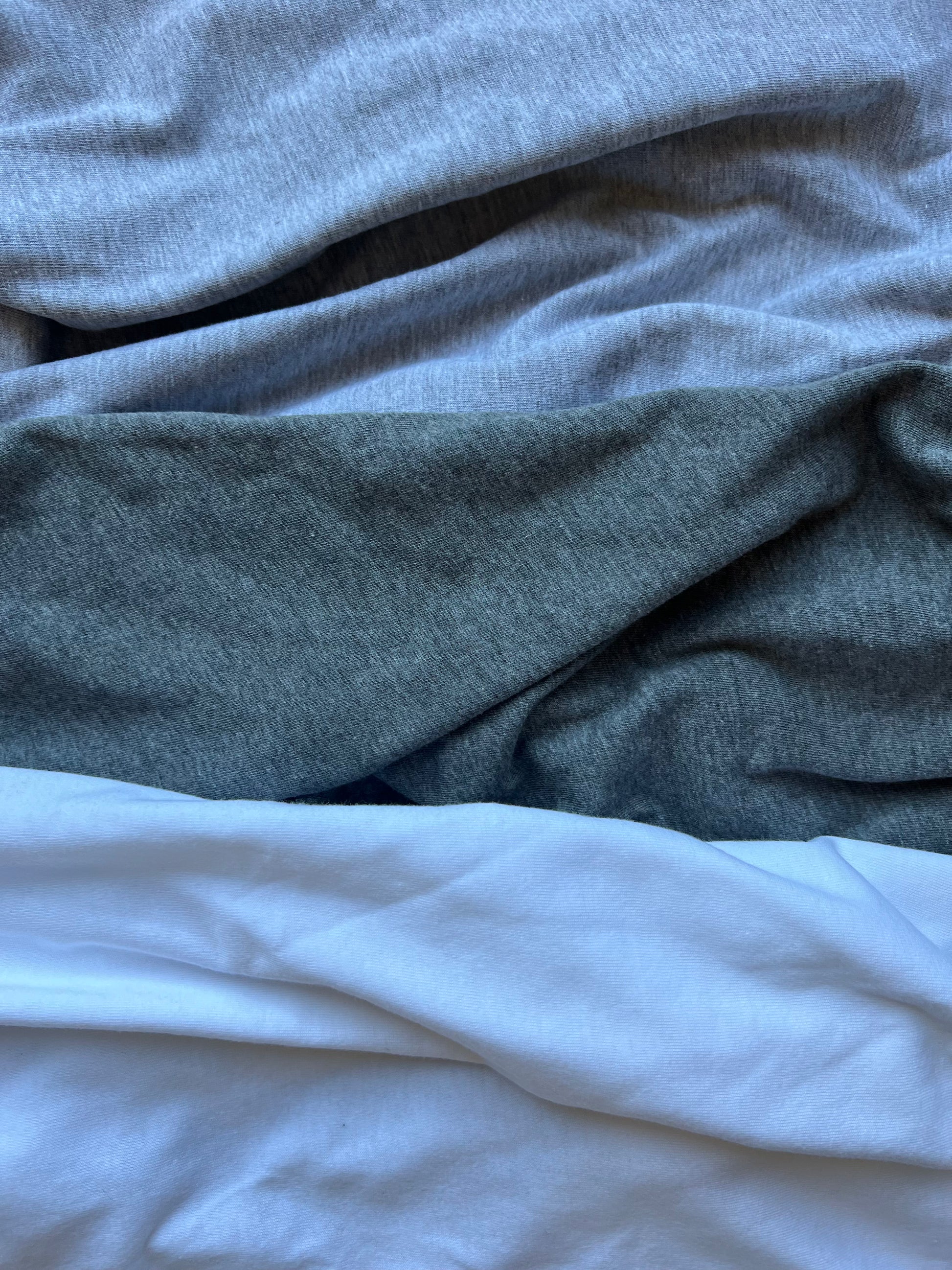 Heather colors - 52% cotton, 48% polyester; Athletic Heather and Black Heather - 90% cotton, 10% polyester.